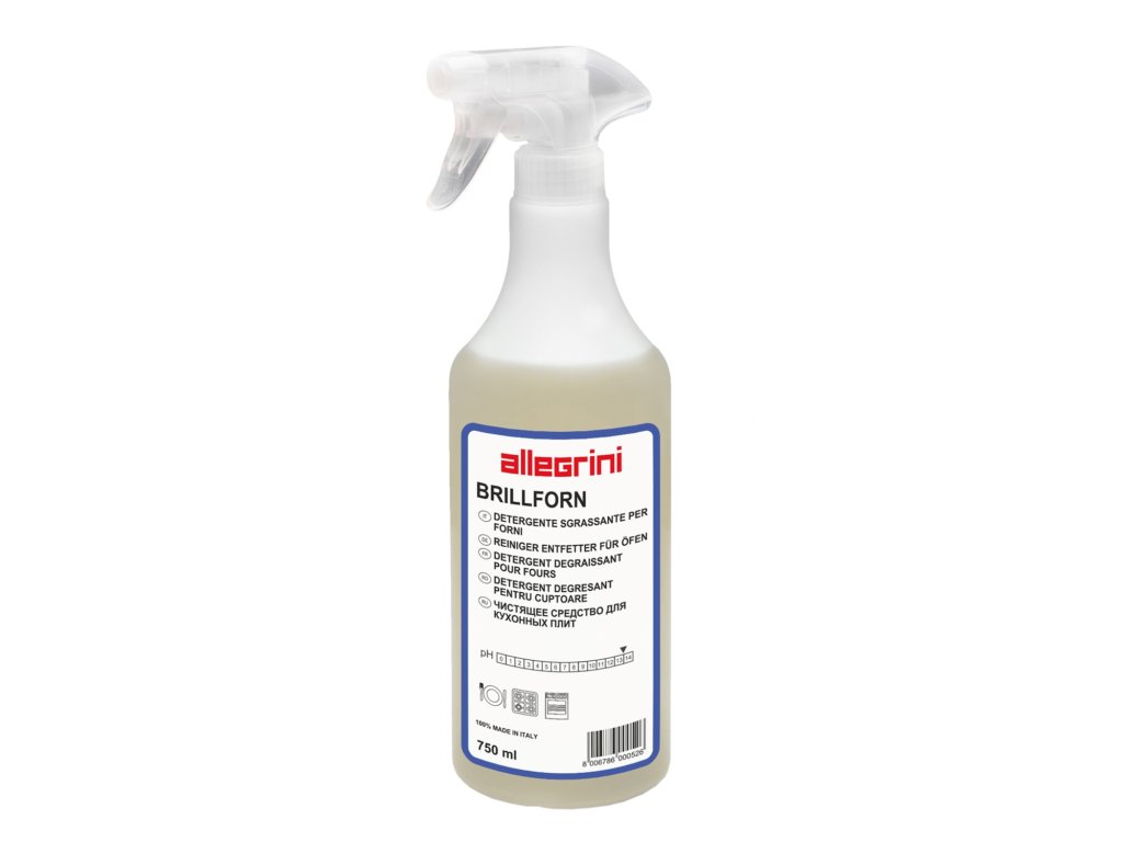CUM SĂ O FACI:Pulverizați BRILLFORN pe pereții aragazului sau cuptorului, lăsați timp de câteva minute și apoi îndepărtați cu un burete. Nu pulverizați pe suprafețe fierbinți. Temperatura ideală este de aprox. 40-50 °C.
