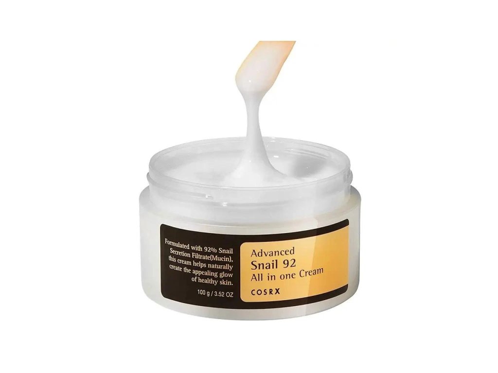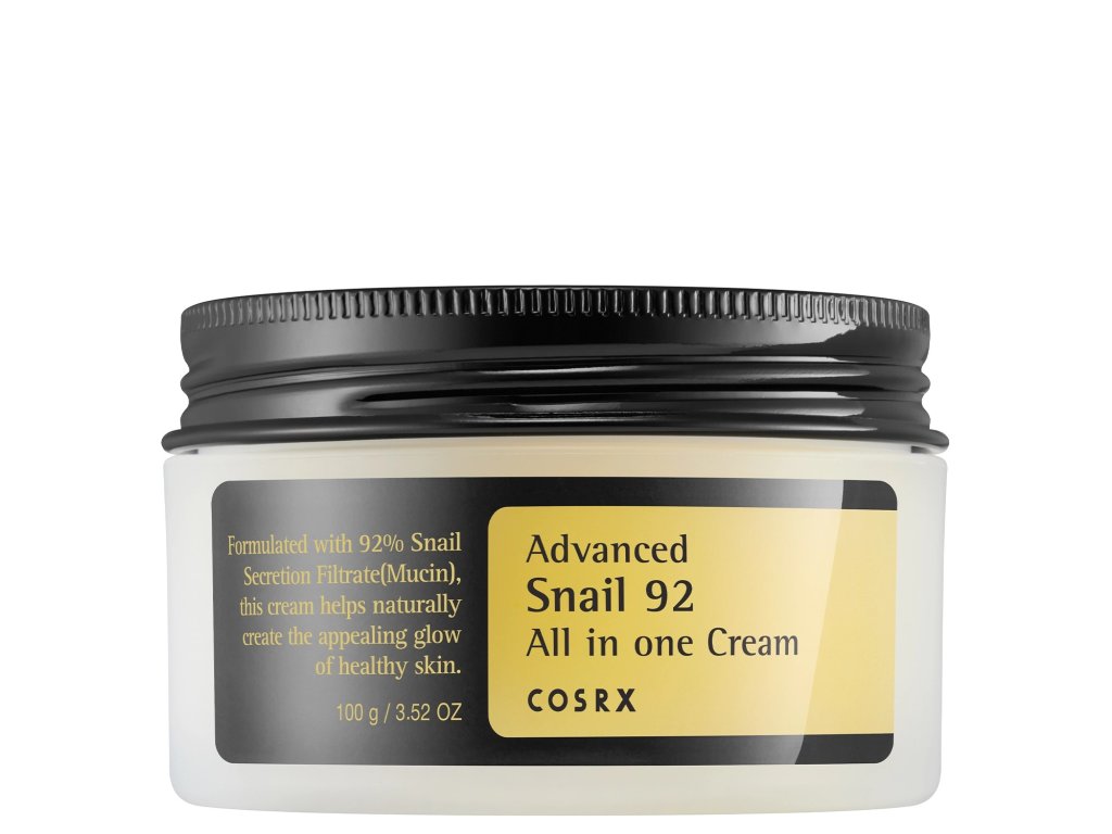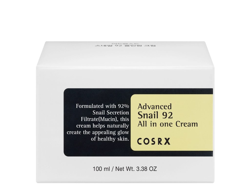 COSRX - Advanced Snail 92 Cremă completă - cremă multifuncțională care conține 92% filtrat de mâzgă de melc. Crema hidratează intens, hrănește, are efecte anti-îmbătrânire și luminează coloritul. crema este îmbogățită cu hialuronat de sodiu, betaină, arginină, alantoină și pantenol, care împreună hidratează intens, reduc inflamațiile și calmează iritațiile. textura ușoară, de gel-cremă este absorbită eficient și nu lasă o peliculă vizibilă pe piele. Crema este potrivită pentru toate tipurile de piele și este fără parfum.
