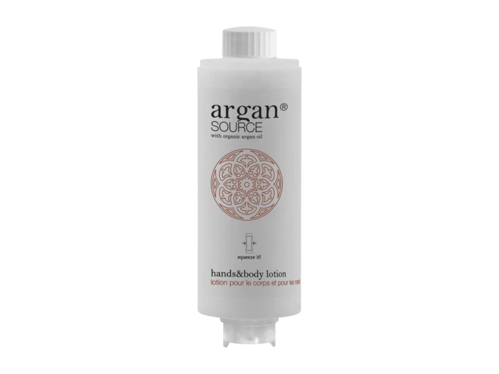 Cosmetice de hotelSURSA ARGANcare conține ulei de argan organic. Un elixir de frumusețe care a devenit un must-have în produsele de frumusețe datorită antioxidanților săi. De asemenea, are un efect de înmuiere și hidratare. Parfumul încântător și finisajul satinat elegant vă vor aduce oaspeții în atmosfera Marocului. O calitate sofisticată inspirată de aurul deșertului.