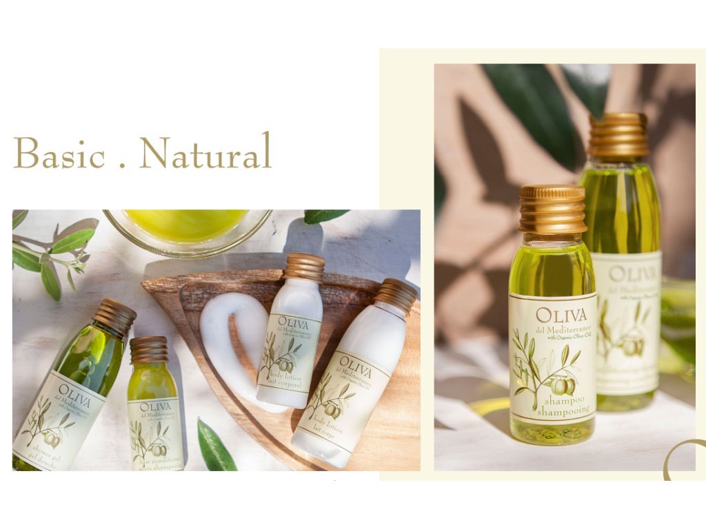 "Oliva del Mediterraneo" je značka hotelové kosmetiky, která využívá organického olivového oleje a je založena na starověkých italských tajemstvích krásy. Produkty jsou navrženy tak, aby jemně čistily a hydratovaly pokožku a vlasy a jsou známé svou svěží středomořskou vůní, která kombinuje tóny bergamotu, eukalyptu, pomerančových květů, tymiánu, ylang-ylangu a dalších.
