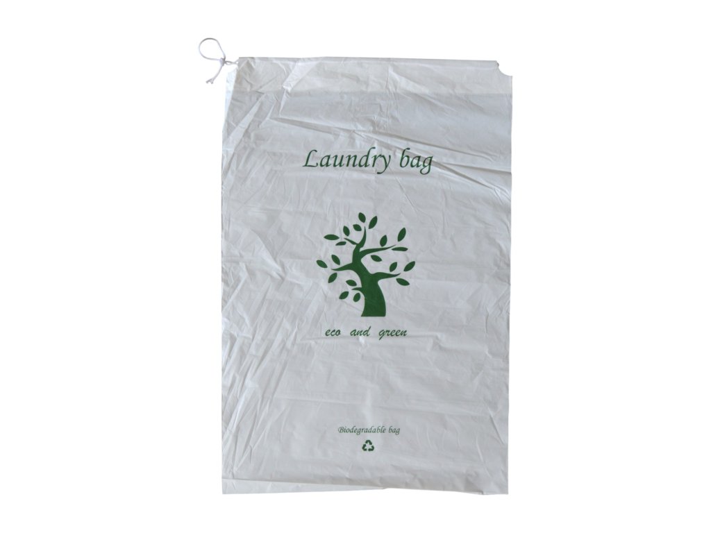 Sacul de rufe din amidon de porumb este o opțiune ecologică pentru hotelul dumneavoastră. Un design alb simplu cu marca Eco și copacul verde, care le permite oaspeților dvs. să știe că sunteți unul dintre hotelurile conștiente de mediul înconjurător.
