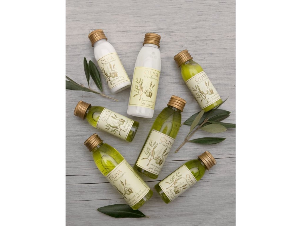 "Oliva del Mediterraneo" je značka hotelové kosmetiky, která využívá organického olivového oleje a je založena na starověkých italských tajemstvích krásy. Produkty jsou navrženy tak, aby jemně čistily a hydratovaly pokožku a vlasy a jsou známé svou svěží středomořskou vůní, která kombinuje tóny bergamotu, eukalyptu, pomerančových květů, tymiánu, ylang-ylangu a dalších.