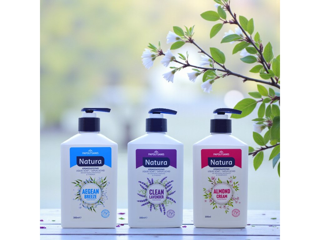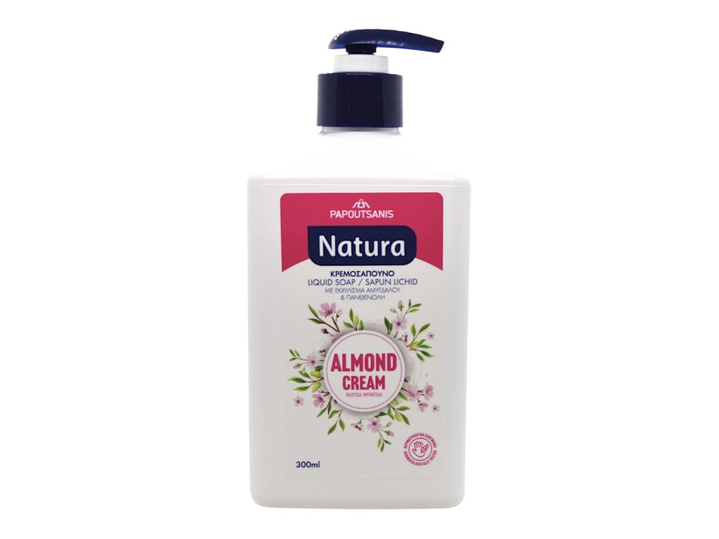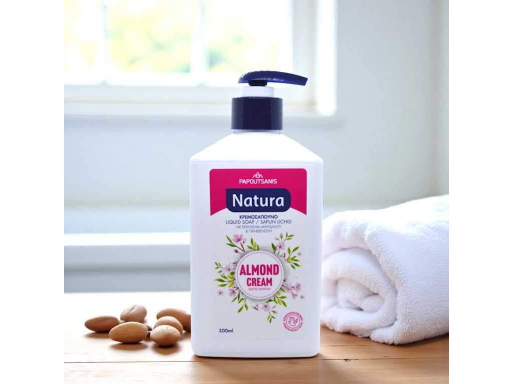 Experimentați o atingere a Mediteranei cusăpun lichid Natura Papoutsanis Almond Cream, care aduce echilibrul perfect între îngrijirea naturală și parfumul moale și cald al cremei de migdale.