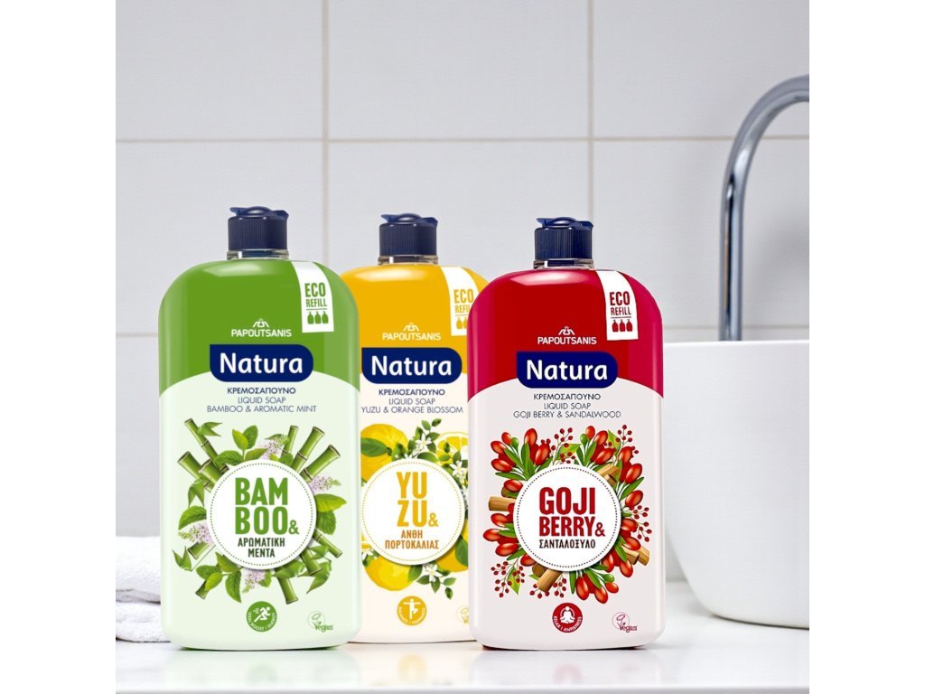 ProducătorPapoutsanis se angajează față de producția etică și organică - nu utilizează teste pe animale sau materii prime testate pe animale. Ambalajul, în special reumplerea de 900 ml, este conceput cu gândul la mediu - sticla este fabricată din 30% plastic reciclat și este 100% reciclabilă.