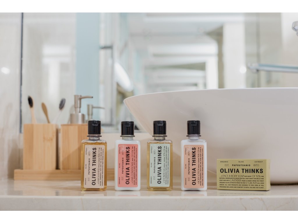 OLIVIA GÂNDEȘTE iese în evidență datorită formulă delicată cu ulei de măsline organic, Aloe Vera, ulei de semințe de catarant etiopian și vitamina Ecare echilibrează nevoile pielii, menținând-o netedă și hidratată. Fără aditivi chimici, cu detergenți naturali și parfumuri revitalizante inspirate din natură: trandafir, lămâie, portocală, cimbru, lavandă, ambră și lemn de cedru, Olivia Thinks oferă o senzație naturală de bunăstare și întinerire. Toate produsele Olivia Thinks sunt fabricatefără parabeni, SLES, izotiazolinone, BHT, formaldehide, EDTA, silicon, coloranți și vin cu ambalaje 100% reciclate și reciclabile.