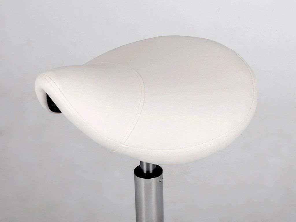 Scaun rotativ ergonomic cu șezut profilat în formă de șa, reglare confortabilă a înălțimii folosind un arc cu gaz și roți. Scaunul rotativ susține distribuția optimă a greutății corporale și facilitează adoptarea unei poziții naturale de ședere. Baza cromată strălucitoare cu cinci brațe va adăuga eleganță oricărui interior. Conceput pentru saloane de masaj, fizioterapie, saloane de înfrumusețare și saloane de coafură.