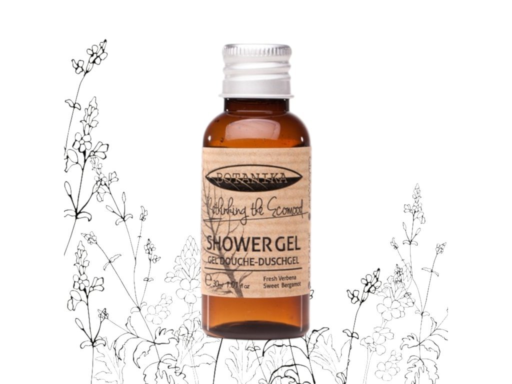 Gel de duș Botanika Verbena & Bergamot jîmbunătățită cu o formulă cu un parfum proaspăt de verbena și bergamotă. Este ideal pentru utilizarea zilnică și se potrivește oricărui spațiu, aducând o notă de rafinament și prospețime oricărei încăperi. Acest cosmetic organic este fabricat fără conservanți, parabeni și nu este testat pe animale. Dozatoarele sunt 100% reciclabile, astfel încât salvați mediul nostru. Designul stilizat al flacoanelor Botanika de 30 ml, care amintește de vechile flacoane de farmacie, captivează oaspeții hotelului cu originalitate și o surpriză plăcută este o întoarcere în istorie. Curăță în profunzime pielea și o lasă netedă, împrospătată și delicat parfumată cu o aromă de citrice.