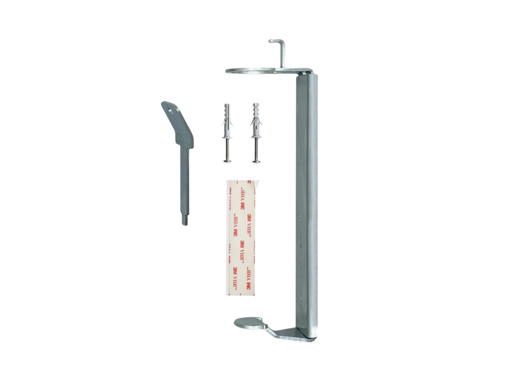Suport de perete simplu din oțel inoxidabil, se potrivește dozatoarelor de 380 ml și 480 ml din gamă PRIJA, IERBOLOGIE ELEMENTALĂ, GUEST LOVE, ANYAH. Vopsea pulbere neagră.